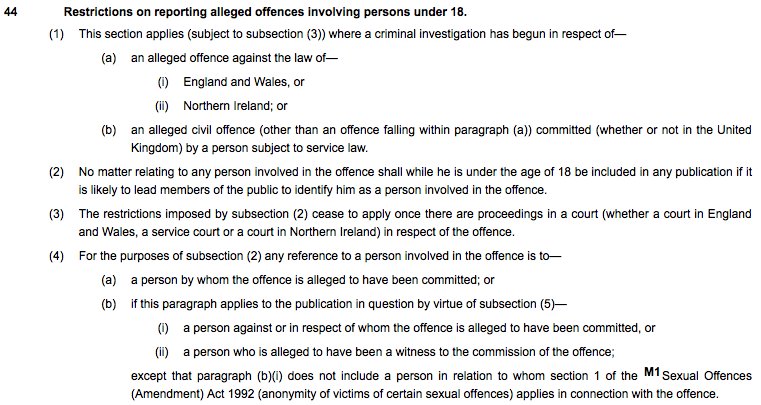 There is a law on the statute books that would close up this loophole and give a child anonymity as soon as an investigation has begun, that is Section 44 of the Youth Justice and Criminal Evidence Act 1999, and here that is…