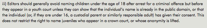 So, Helen would have no legal right to anonymity at this stage. What of ethical codes though, does the Editor’s Code of Practice have anything to say on this?